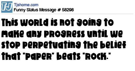 - # 52889 This world is not going to make any real progress until we stop perpetuating the belief that "paper" beats "rock."