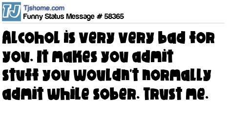 X is Alcohol is very very bad for you. It makes you admit stuff you wouldn't normally admit while sober. Trust me.