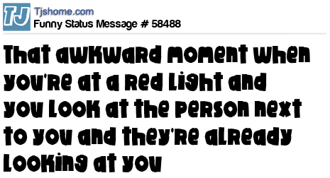 X says That awkward moment when you're at a red light and you look at the person next to you and they're already looking at you