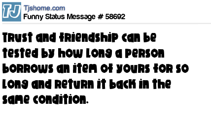 X says trust and friendship can be tested by how long a person borrows an item of yours for so long and return it back in the same condition.