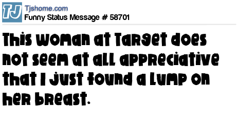 X This woman at Target does not seem at all appreciative that I just found a lump on her breast.