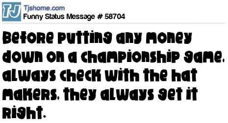 X says Before putting any money down on a championship game, always check with the hat makers, they always get it right.
