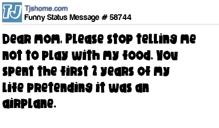 - # 81700 Dear mom and dad, please stop telling me not to play with my food. You spent 3 years making airplane noises with it.