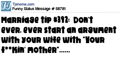 X is Marriage tip #392: Don't ever, ever start an argument with your wife with "Your f**kin' mother"......