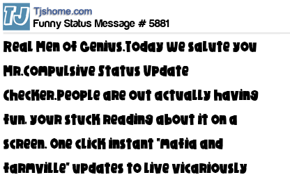 - # 8808 says Real Men of Genius....Today we salute you, Mr. Compulsive Status Update Checker.
