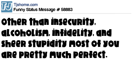 X Other than insecurity, alcoholism, infidelity, and sheer stupidity most of you are pretty much perfect.