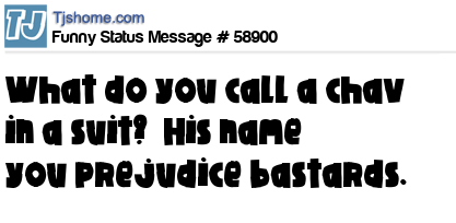 X What do you call a chav in a suit? His name you prejudice bastards.