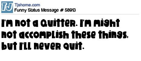 X I'm not a Quitter. I'm might not accomplish these things, but I'll never quit.