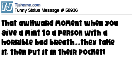 X says That awkward moment when you give a mint to a person with a horrible bad breath....they take it, then put it in their pocket!