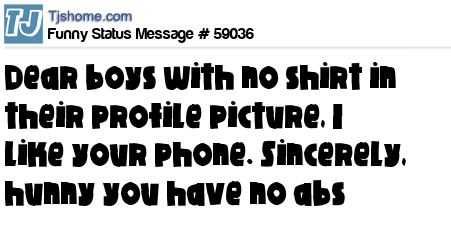 X Dear boys with no shirt in their profile picture, I like your phone. Sincerely, hunny you have no abs