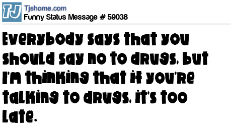 - # 168456 Say NO! to drugs. Say YES! to drugs. It really doesn't matter what you tell drugs because if you're talking to drugs, you're taking them.