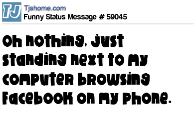 X Oh nothing, just standing next to my computer browsing Facebook on my phone.