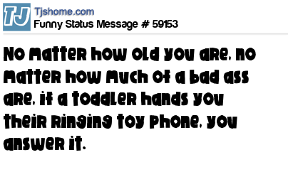 - # 80150 Now matter how old you are, No matter how much you think you're a Badass.. If a toddler hands you their ringing toy phone, you answer it!