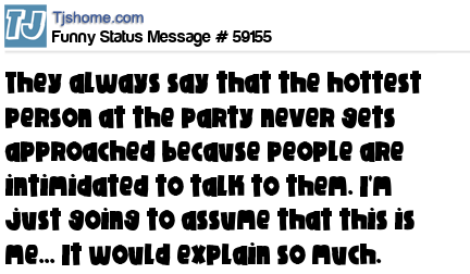X is They always say that the hottest person at the party never gets approached because people are intimidated to talk to them. I'm just going to assume that this is me... It would explain so much.