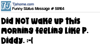 - # 73284 i dont wake up in the morning feeling like p diddy. I feel like crap -_-