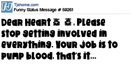 X Dear Heart {♥} , Please stop getting involved in everything. Your job is to pump blood, that's it...