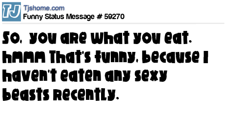 X is so, you are what you eat. hmmm That's funny, because I haven't eaten any sexy beasts recently.