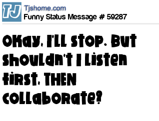 X Okay, I'll stop. But shouldn't I listen first, THEN collaborate?