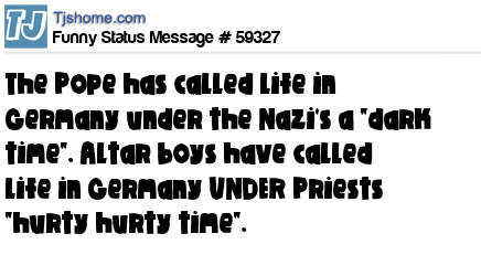 X is The Pope has called life in Germany under the Nazi's a "dark time". Altar boys have called life in Germany UNDER Priests "hurty hurty time".