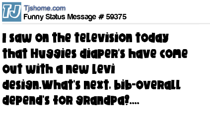 X is I saw on the television today that Huggies diaper's have come out with a new Levi design.What's next, bib-overall depend's for grandpa?....