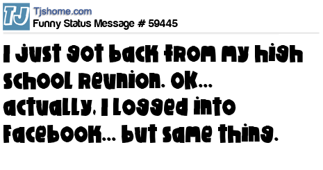 - # 107184 What's the point of a high school reunion? I have Facebook. I already know you got Fat