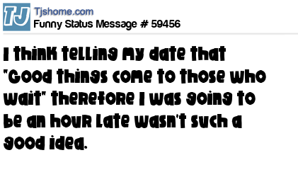 X is I think telling my date that "Good things come to those who wait" therefore I was going to be an hour late wasn't such a good idea.
