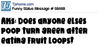 X aks: Does anyone elses poop turn green after eating Fruit Loops?