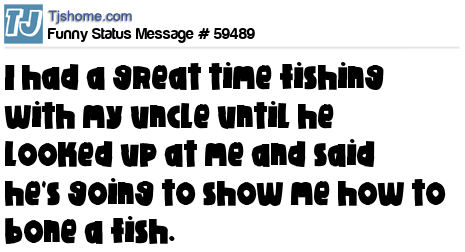- # 14301 You know when they have a fishing show on TV? They catch the fish and then let it go. They don't want to eat the fish, they just want to make it late for something.