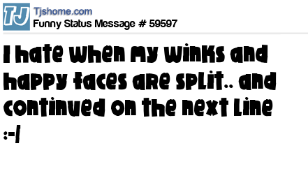 X I hate when my winks and happy faces are split.. and continued on the next line :-/