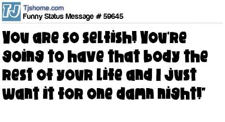 - # 17906 You are so selfish! You're going to have that body the rest of your life and I just want it for one night!"
