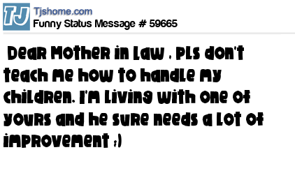 X is Dear Mother in Law , pls don't teach me how to handle my children. I'm living with one of yours and he sure needs a lot of improvement ;)