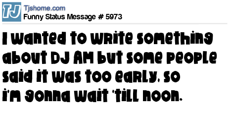 X is I wanted to write something about DJ AM but some people said it was too early, so i'm gonna wait 'till noon.