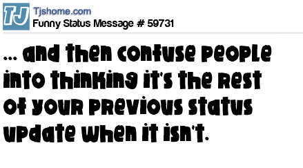 X ... and then confuse people into thinking it's the rest of your previous status update when it isn't.