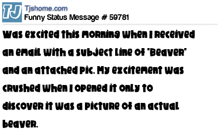 X was excited this morning when I received an email with a subject line of "Beaver" and an attached pic. My excitement was crushed when I opened it only to discover it was a picture of an actual beaver.