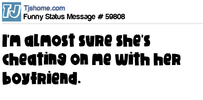 - # 84842 Ladies: If your boyfriend is bathing more than once a week...he may be cheating on you!