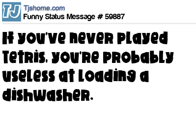 - # 95753 I'd like to thank Tetris for making me really good at loading my dishwasher.