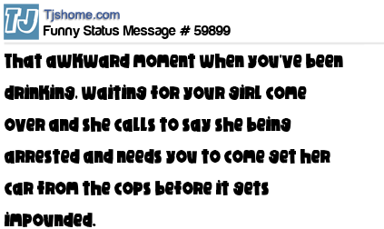 X That awkward moment when you've been drinking, waiting for your girl come over and she calls to say she being arrested and needs you to come get her car from the cops before it gets impounded.