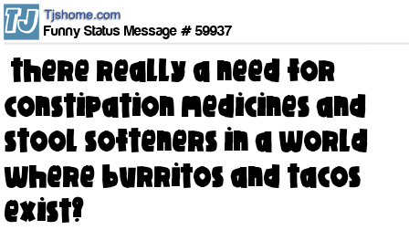 X there really a need for constipation medicines and stool softeners in a world where burritos and tacos exist?