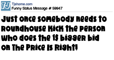 X Just once somebody needs to roundhouse kick the person who does the 1$ bigger bid on The Price Is Right!