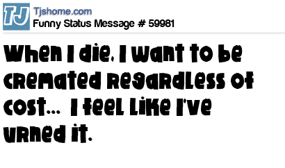 X When I die, I want to be cremated regardless of cost... I feel like I've urned it.