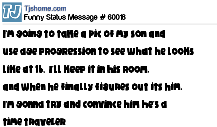 X says i'm going to take a pic of my son and use age progression to see what he looks like at 16. I'll keep it in his room, and when he finally figures out its him, I'm gonna try and convince him he's a time traveler