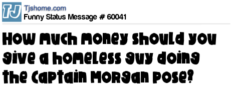 X is how much money should you give a homeless guy doing the Captain Morgan pose?