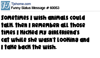 X is Sometimes I wish animals could talk, then I remember all those times I kicked my girlfriend's cat while she wasn't looking and I take back the wish.