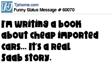 X I'm writing a book about cheap imported cars... It's a real Saab story.