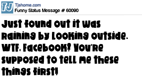 X is Just found out it was raining by looking outside. WTF, Facebook? You're supposed to tell me these things first!