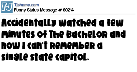 X says Accidentally watched a few minutes of The Bachelor and now I can't remember a single state capitol.