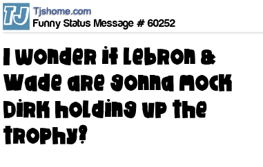 X is I wonder if Lebron & Wade are gonna mock Dirk holding up the trophy?