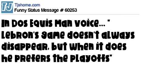 X says in Dos Equis Man voice... " Lebron's game doesn't always disappear, but when it does he prefers the playoffs"