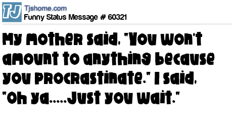 X My mother said, "You won't amount to anything because you procrastinate." I said, "Oh ya.....Just you wait."