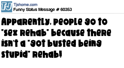 X Apparently, people go to "sex rehab" because there isn't a "got busted being stupid" rehab!